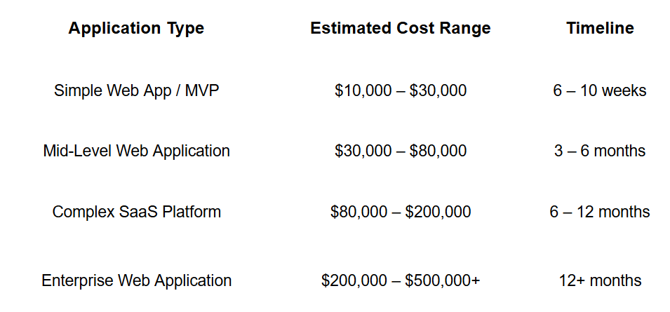 Not all web applications are created equal. Here's a realistic cost range based on the type of project: